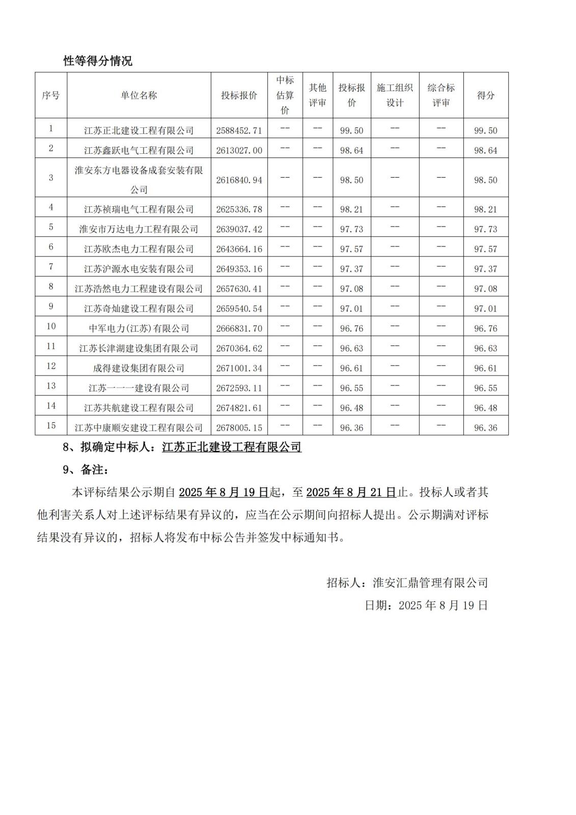 工程建設項目中標候選人公示