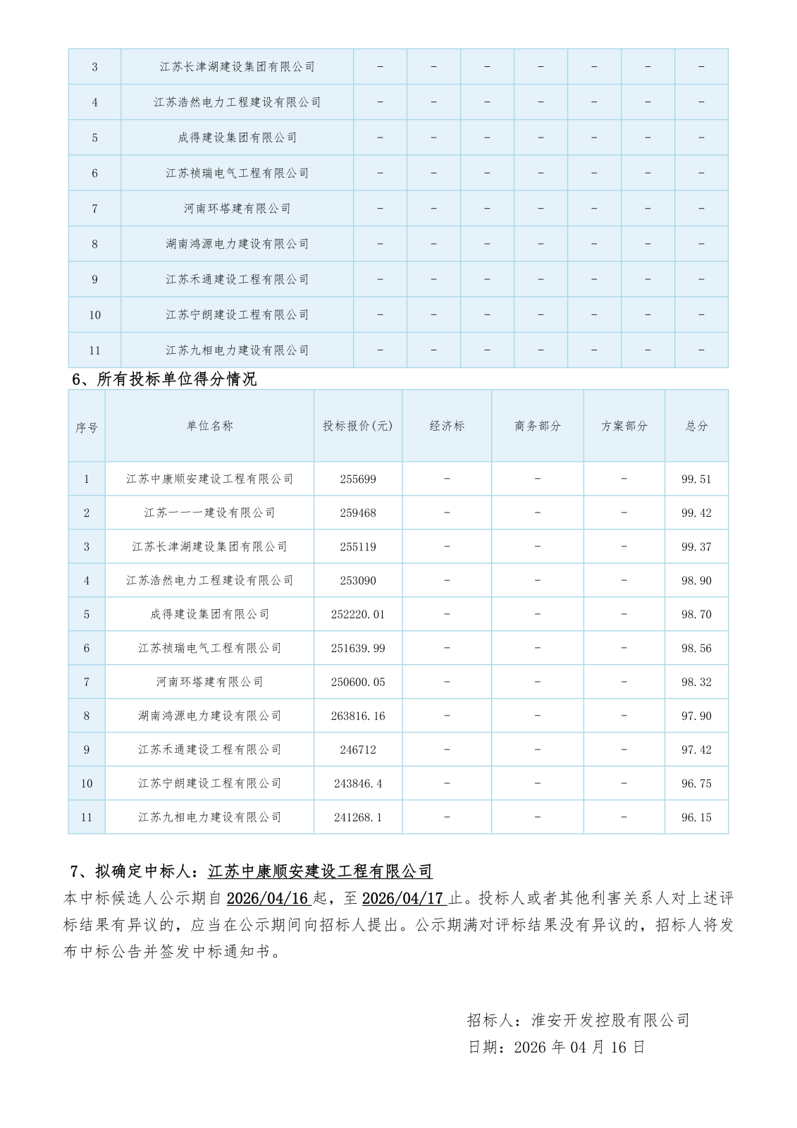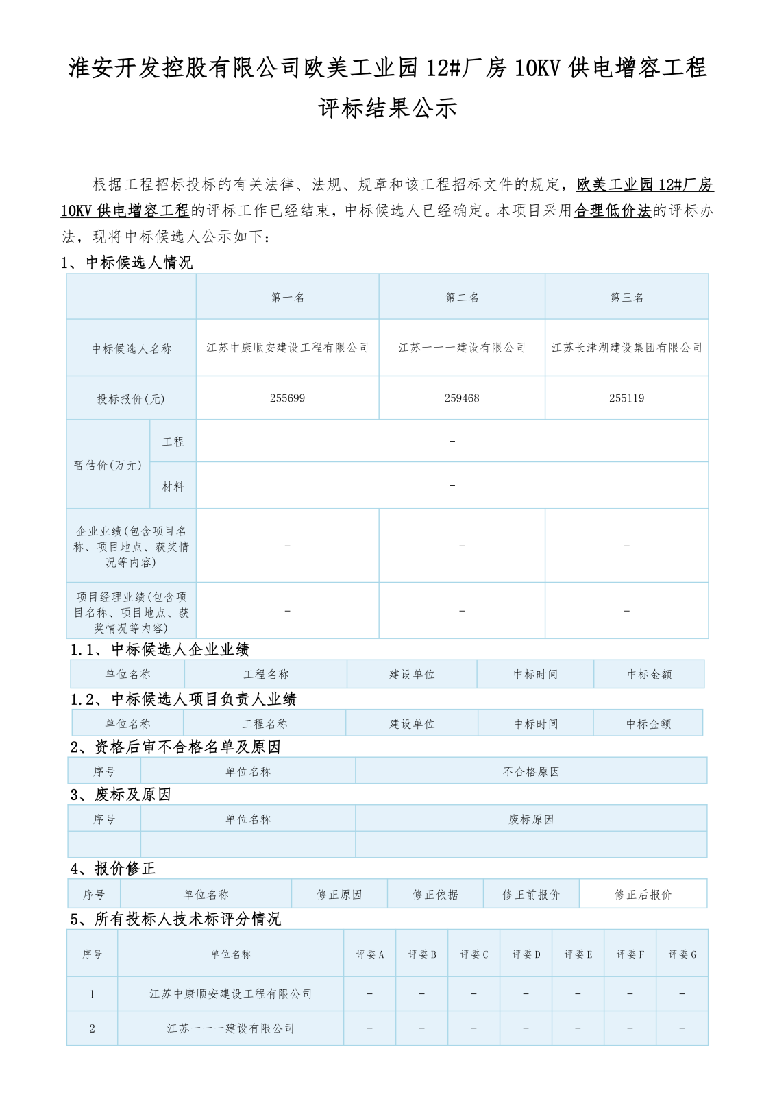 淮安開發(fā)控股有限公司歐美工業(yè)園12#廠房10KV供電增容工程評標(biāo)結(jié)果公示